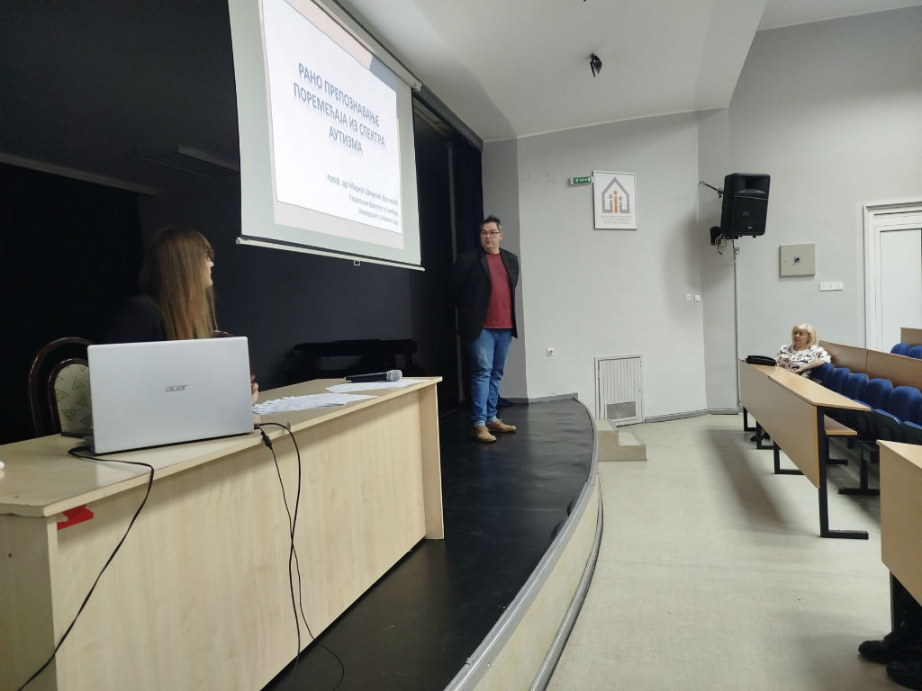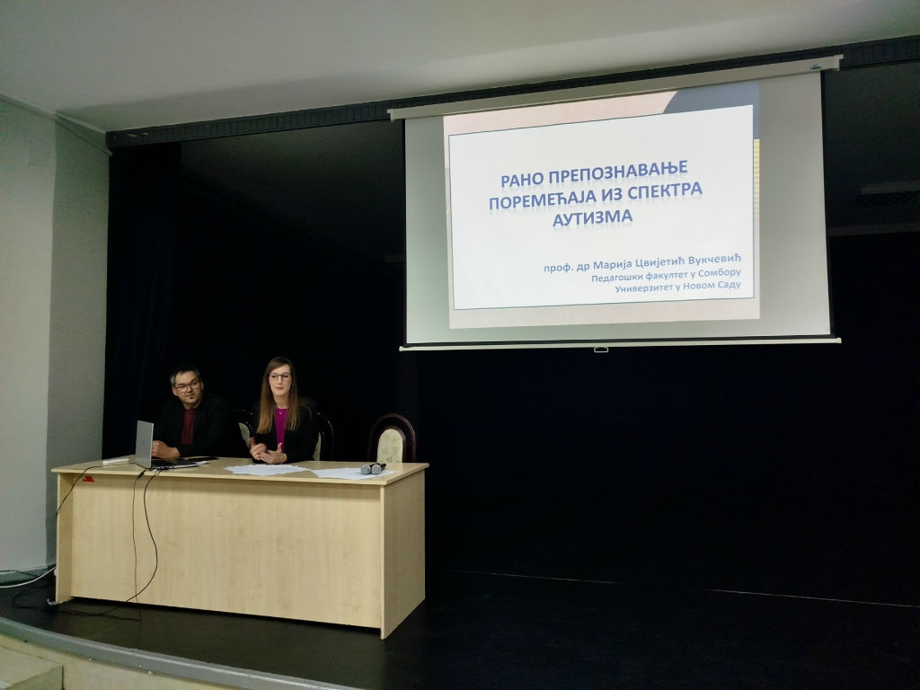 Glavno predavanje održala je prof. dr Marija Cvijetić Vukčević sa Pedagoškog fakulteta u Somboru.Ona je posebno istakla da su ishodi tretmana neuporedivo bolji ukoliko se sa intervencijama krene u najranijem uzrastu, ali je i upozorila na štetne mitove koji prate ovu temu:
