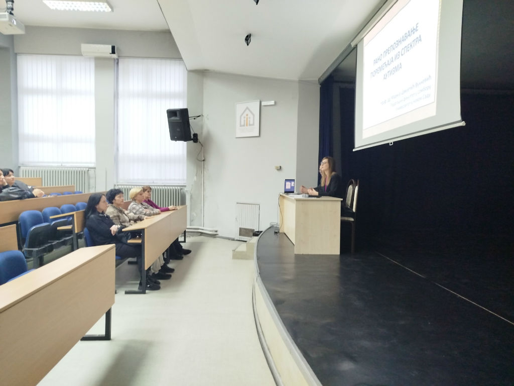 Glavno predavanje održala je prof. dr Marija Cvijetić Vukčević sa Pedagoškog fakulteta u Somboru.Ona je posebno istakla da su ishodi tretmana neuporedivo bolji ukoliko se sa intervencijama krene u najranijem uzrastu, ali je i upozorila na štetne mitove koji prate ovu temu: