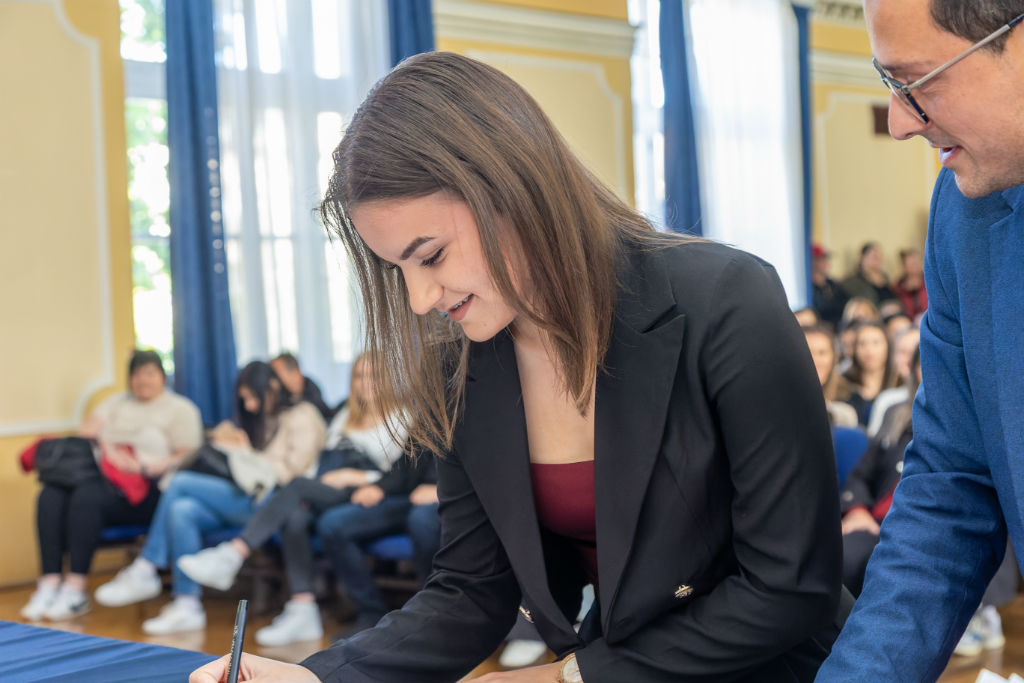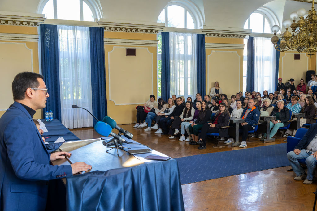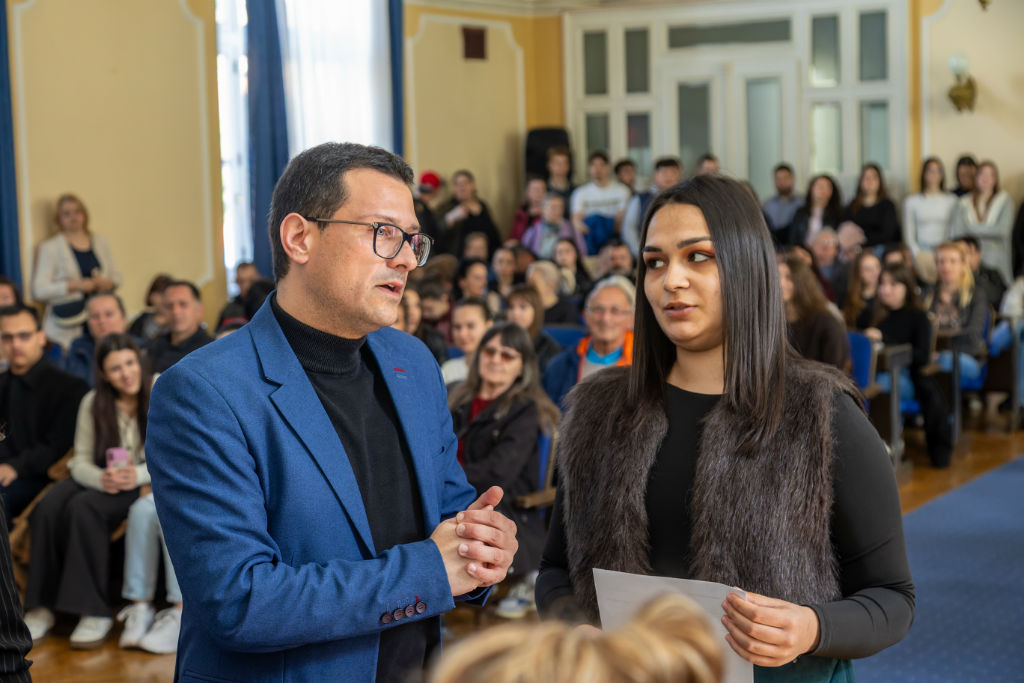 Ekonomsko-trgovinska škola u Kikindi obeležila je svoj dan na nesvakidašnji način. Umesto klasične proslave, fokus je bio na humanosti, zajedništvu i plemenitosti, čime su učenici i zaposleni još jednom pokazali da su im prave vrednosti na prvom mestu. Nakon što su nedavno uspešno prikupili sredstva za operaciju majke jedne od učenica, đaci su svoju novu humanitarnu misiju započeli upravo na Dan škole. Cilj je prikupljanje novca za četrnaestogodišnju Hanu Dokić iz Mokrina, koja boluje od spinalne mišićne atrofije, kako bi joj se obezbedila neophodna nova invalidska kolica. Svaki od 320 učenika škole dao je svoj doprinos, stavljajući svoje znanje i talente u službu humanosti. Obeležavanju su prisustvovali članovi Gradskog veća, Tihomir Farkaš i Tamara Radlović, kao i predsednica Sportskog saveza Kikinde, Jelena Čudanov.